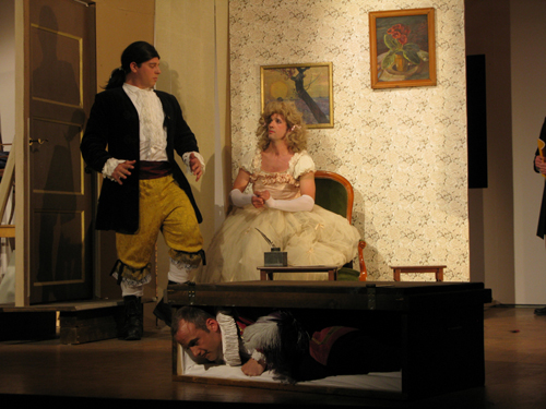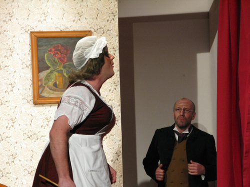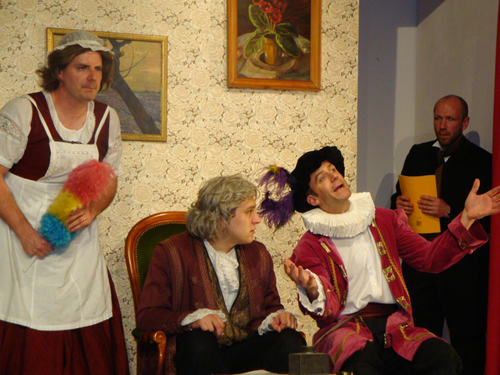 Dans les coulisses d’une grande salle de village, des comédiens amateurs s’apprêtent à jouer une pièce écrite… par le régent ! Et pour se donner du courage, ils n’hésitent pas à boire un peu plus que de raison.